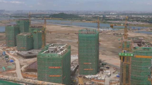 26日,汕头亚青会主场馆二期项目10栋主要建筑的主体结构全面完成封顶。