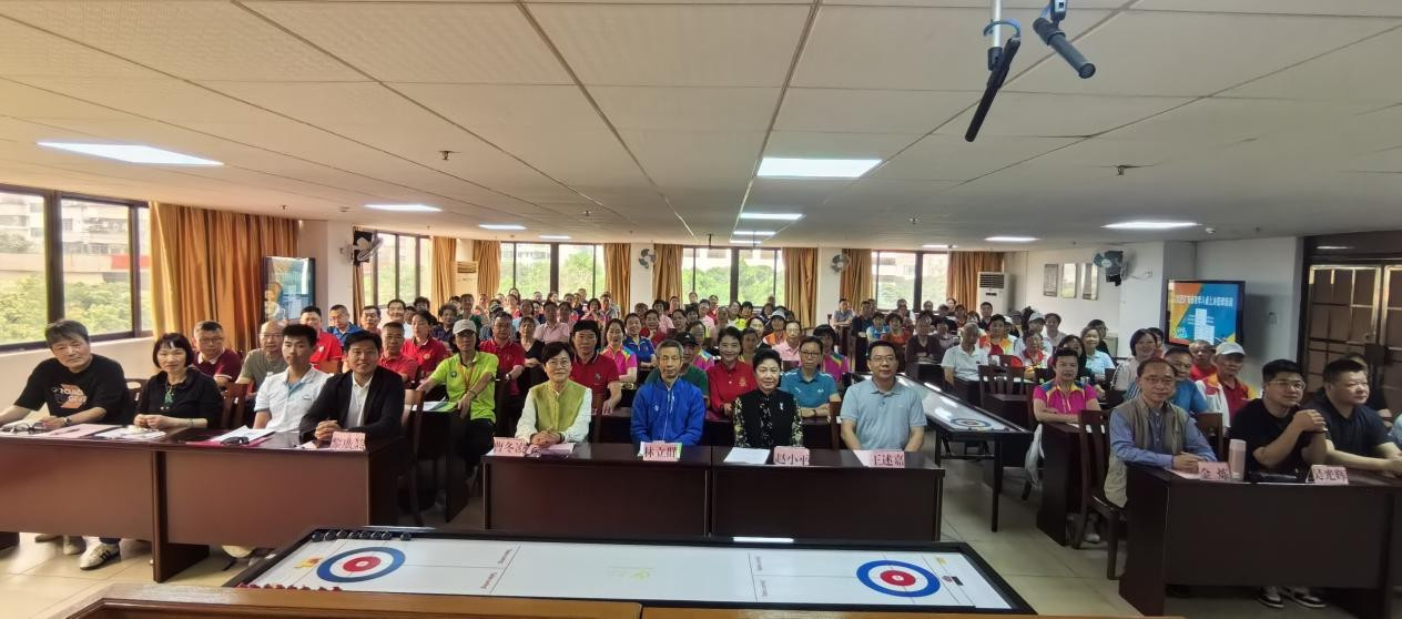4月28日,由广东省老年人体育协会主办、中山市老年人体育协会承办的2025年广东省老年人桌上冰壶球培训班在中山市老年大学隆重举行。来自江门、珠海、东莞、潮州、汕头等地的近110名学员齐聚中山,共同参与这一新兴适老运动项目的系统培训。广东省老年人体育协会副主席赵小平、香港新兴运动协会会长黎广业、中山市老干部活动中心科长王述嘉、中山市老年人体育协会主席曹冬凌等领导嘉宾出席开班仪式。