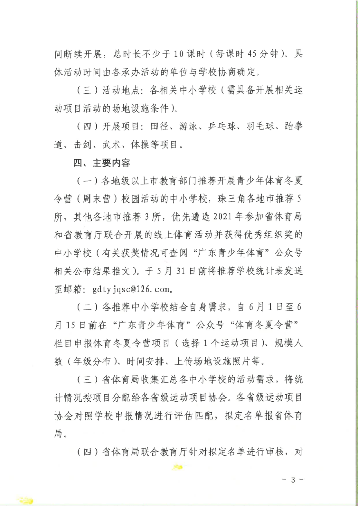 更多本次活动细则,请查看《win007足球即时比分 广东省教育厅关于开展“奔跑吧·少年”2022年广东省青少年体育冬夏令营(周末营)校园活动的通知》。