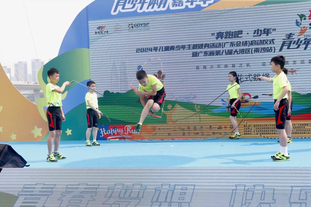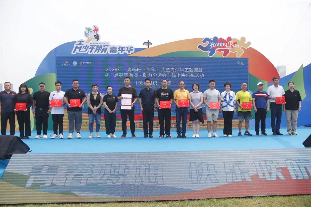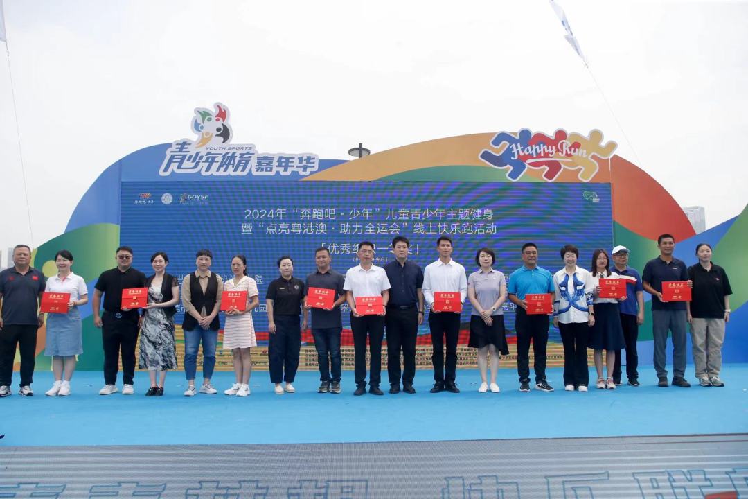 在精彩纷呈的水陆体育项目表演交相辉映之下,2024年“奔跑吧·少年”儿童青少年主题健身活动(广东会场正式启动,同时发布含超过240项内容的广东省2024年“奔跑吧·少年”儿童青少年主题健身活动计划,并为获得2024年“奔跑吧·少年”儿童青少年主题健身暨“点亮粤港澳·助力全运会”线上快乐跑活动优秀组织一等奖单位颁奖。