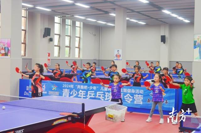 10月19日至20日,2024年“奔跑吧·少年”儿童青少年主题健身活动之青少年乒乓球夏令营在深圳市南山区西丽小学举行。本次夏令营面向深圳全市青少年开放报名,由专业教练为青少年教授乒乓球基本理论知识及技术,同时安排实战训练。近百名热爱乒乓球的青少年齐聚一堂,在专业乒乓球训练中感受“国球”魅力。