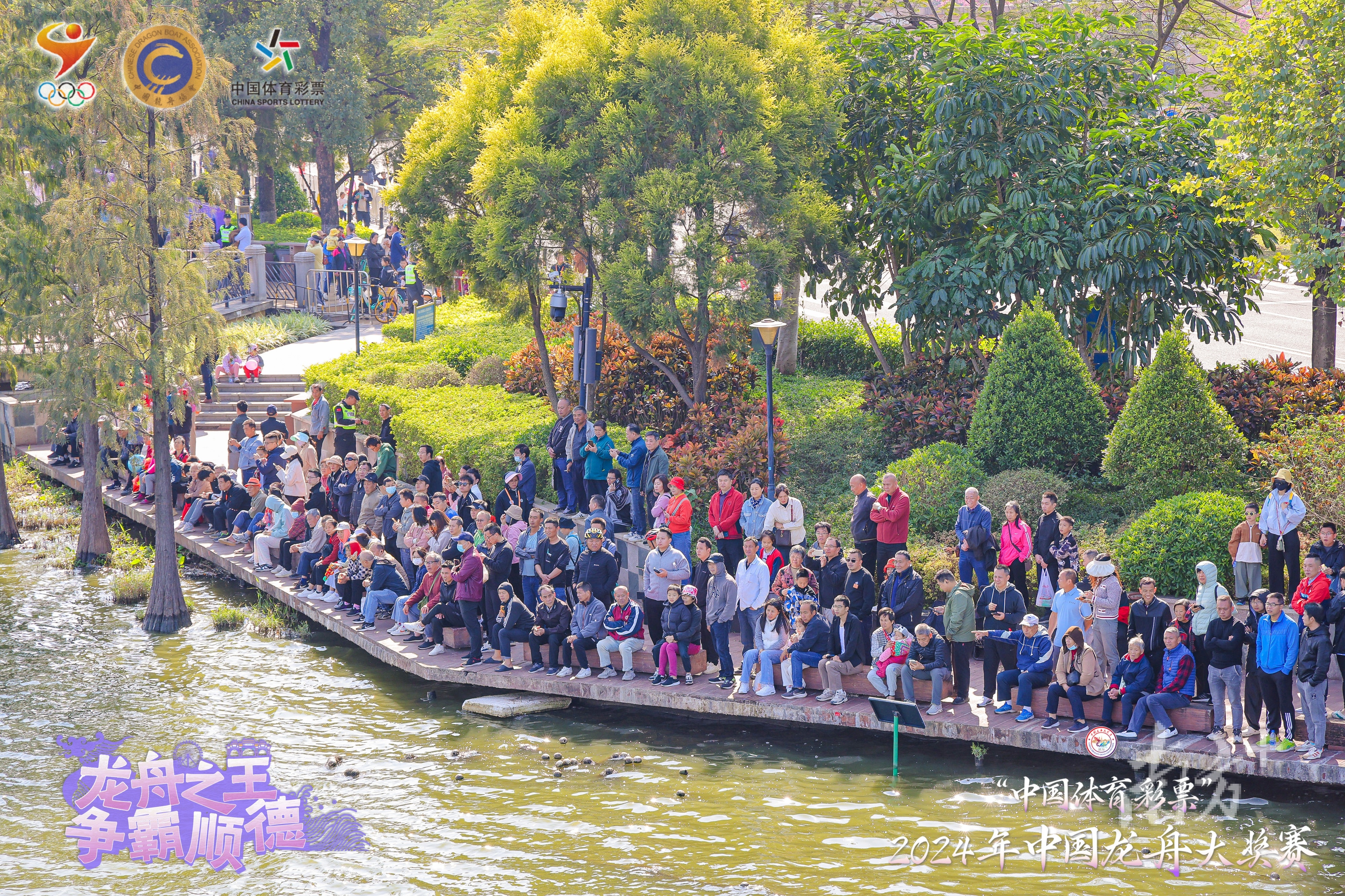 12月8日,2024年中国龙舟大奖赛开幕仪式暨“行运一条龙”祈福巡游活动在顺德桂畔湖一带举行。最终,各组别团体总分第一名分别为:男子公开组(22人龙舟)——顺德乐从罗浮宫龙舟队;女子公开组(12人龙舟)——九江双蒸女子龙舟队;青少年男子组(12人龙舟)——聊城大学龙舟队;青少年女子组(12人龙舟)——盐城大洋湾女子龙舟队。