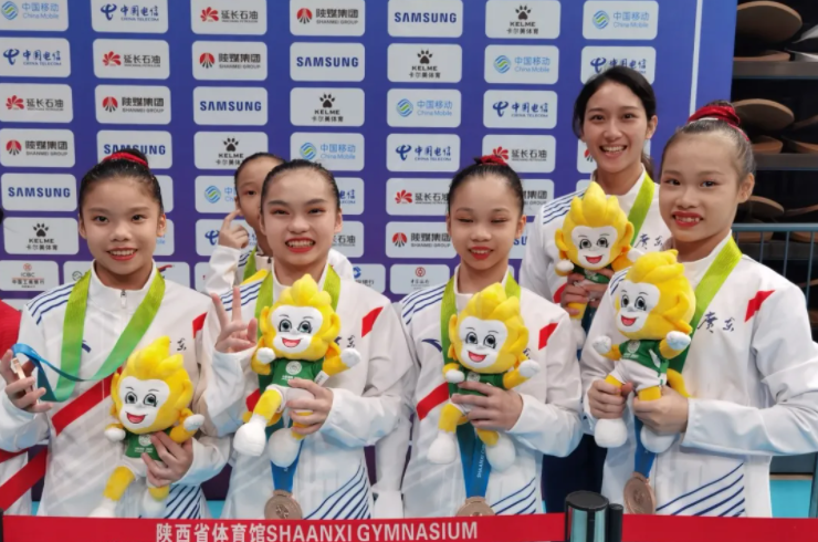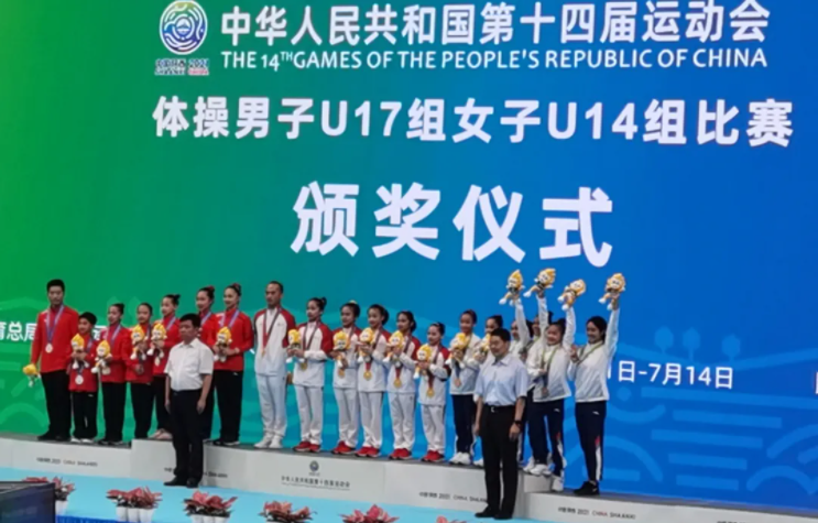 7月14日,第十四届全国运动会体操青年组比赛在陕西落幕。在女子U14组团体决赛中,浙江队摘冠,湖北、广东队分获第二名和第三名。在资格赛中,广东队以团体总分第四的成绩进入决赛。进入决赛后的广东队迅速调整好状态,经过激烈的角逐,最终以总分399.990分获比赛铜牌。