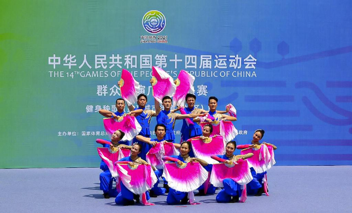 本届全运会首次设置群众展演项目广场舞、广播体操、健身气功、太极拳4个大项,共766支队伍6800多人参赛。广场舞设健身舞、健身秧歌(鼓)、广场龙舞三个分项,健身秧歌(鼓)分项线上展演及网络投票于8月8日开始,8月22日结束,8月25日进行线下评审。