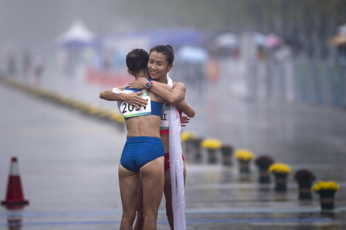 “我很享受比赛,我也尽力了。”刘虹赛后说,这次有些“心有余而力不足”,“感觉自己的体能不算很好”。虽然在比赛后半段雨势很大,但刘虹认为相比起烈日暴晒,这反而是一个更容易帮助竞走运动员出成绩的因素。