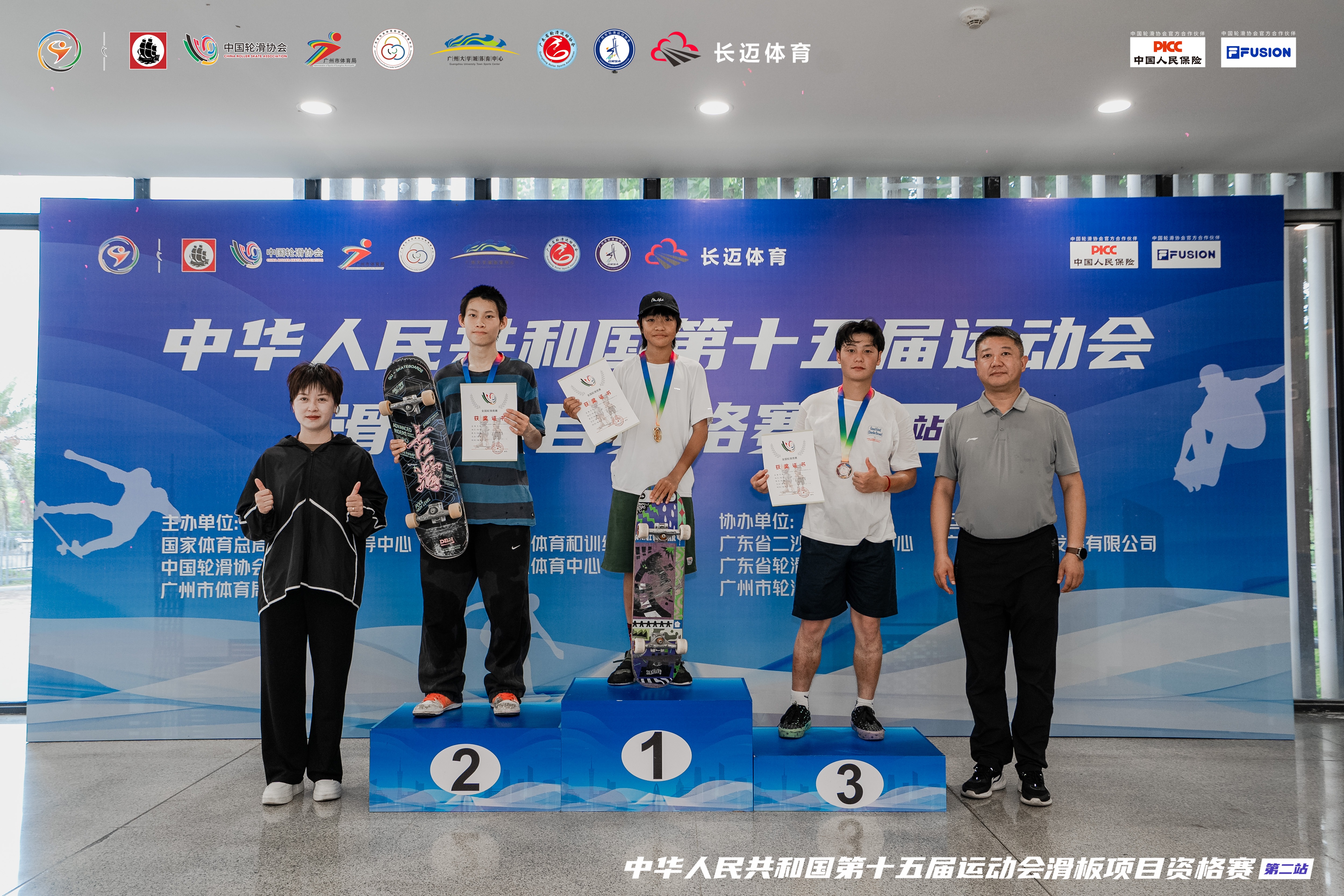 6月30日,中华人民共和国第十五届运动会(简称:“十五运会”)滑板项目资格赛(第二站)在广东省广州大学城体育中心滑板场圆满收官。
