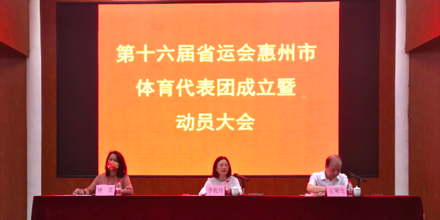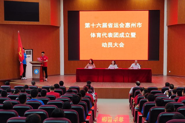 8月3日上午9时,广东省第十六届运动会惠州市体育代表团成立暨动员大会在市体校图书馆礼堂召开,标志着惠州市备战第十六届省运会工作进入了最后冲刺阶段,惠州1500名体育健儿已集结完毕,整装待发。