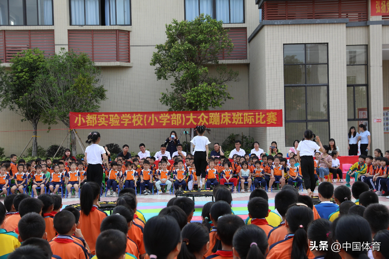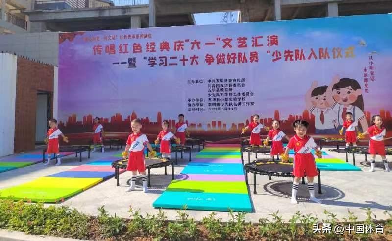 今年的六一儿童节,在横陂镇小都实验学校举办的“传唱红色经典庆‘六一’文艺汇演”中,小朋友们带来了别开生面的“大众蹦床啦啦操-中国范儿”表演;在横陂镇广晟体育小学的“童心飞扬,快乐成长”六一儿童节文艺汇演中,大众蹦床健身操也为大家带来了欢愉和喜悦。