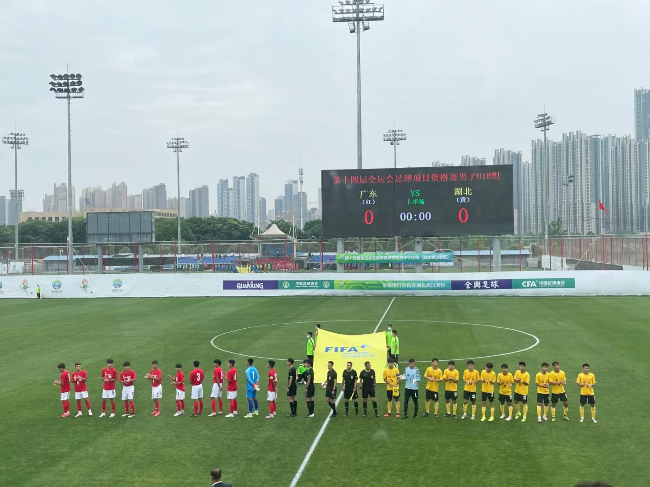 第十四届全运会男足U18组27日进行了7个小组的最后一轮角逐。在武汉赛区的C组,广东队前两轮相继击败山西和湖南,当天面对的是同组最强劲的对手、东道主湖北队。