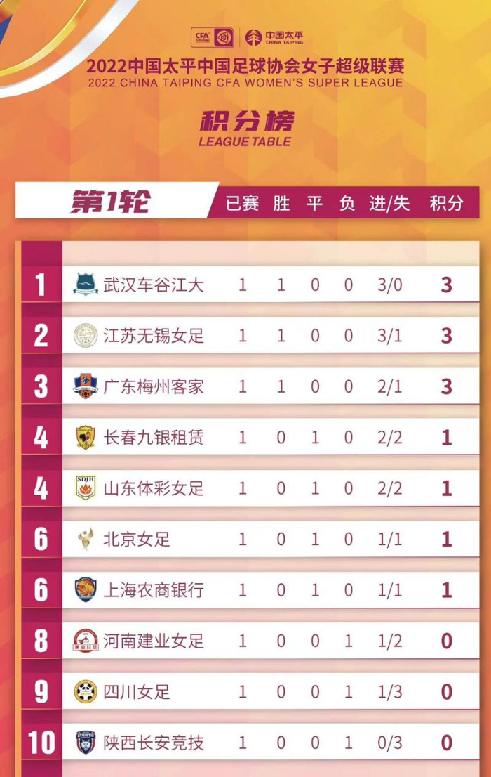 首轮比赛,除广东队外,卫冕冠军武汉队、江苏女足均获胜,山东队的张睿打进了新赛季女超的第一个进球,第2轮比赛将在4月11日进行,广东女足的对手将是山东队。