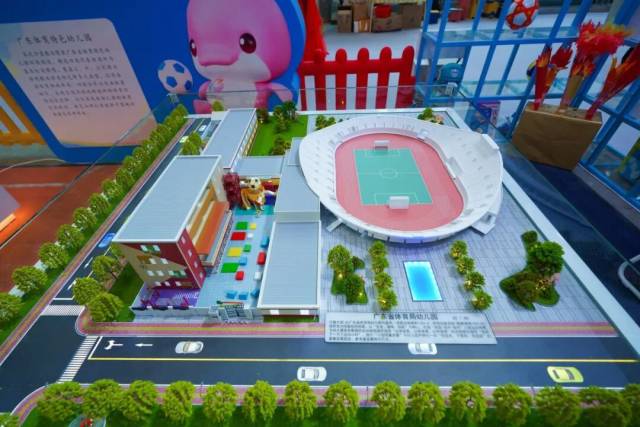 走进展区,四组精致的幼儿园沙盘模型引人驻足。这些沙盘分别以win007足球即时比分 幼儿园、肇庆中学附属幼儿园、广东省育才幼儿院一院和广州花都区保利水晶幼儿园为蓝本设计,涵盖小、中、大等不同办园规模及球类特色园的体育环境创设方案。