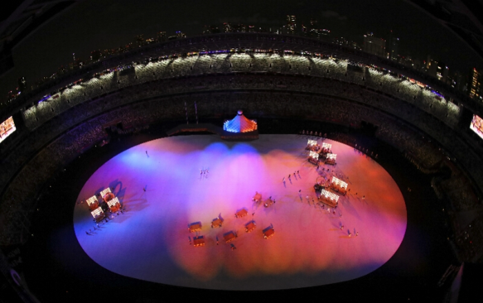 如开幕式前组委会所透露那般,东京奥运的开幕式上体现了疫情元素,表演者在开幕式初期利用复杂的红色线条交织在一起,来反映人们复杂而纠结的心情,虚实结合的红色线条互相拉扯,也代表着人体内神经和肌肉的运转。