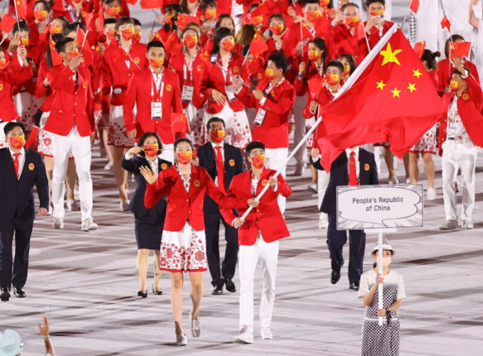 中国体育代表团入场。新华社发