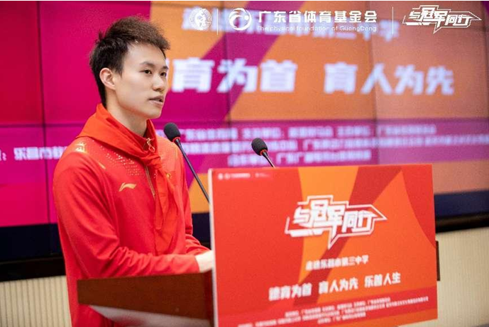 4月25日,由win007足球即时比分 指导、香港赛马会支持、广东省体育基金会主办的“与冠军同行”公益活动走进了乐昌市第三中学。东京奥运会跳水“双冠王”谢思埸亲临现场,为全校师生分享心路历程,传递体育精神。