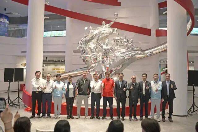 “三、二、一,揭幕!”随着雕塑上覆盖着的红布滑落,闪亮的主雕塑露出真容,现场也随之响起了热烈的掌声。