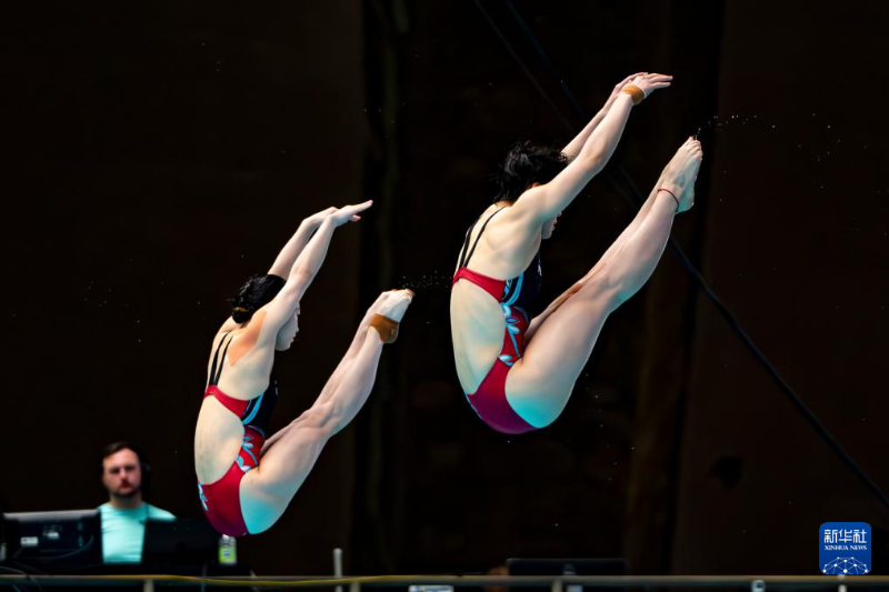 昌雅妮/陈艺文(右)在女子双人三米板比赛中(图/新华社)