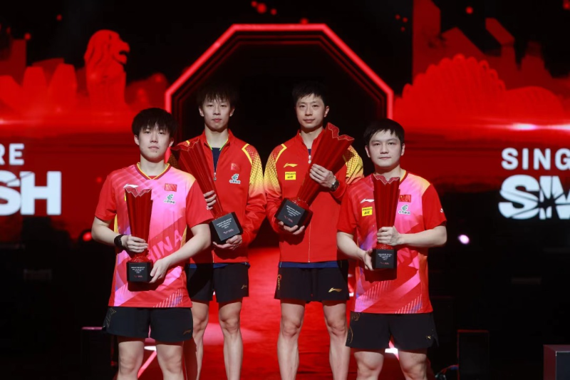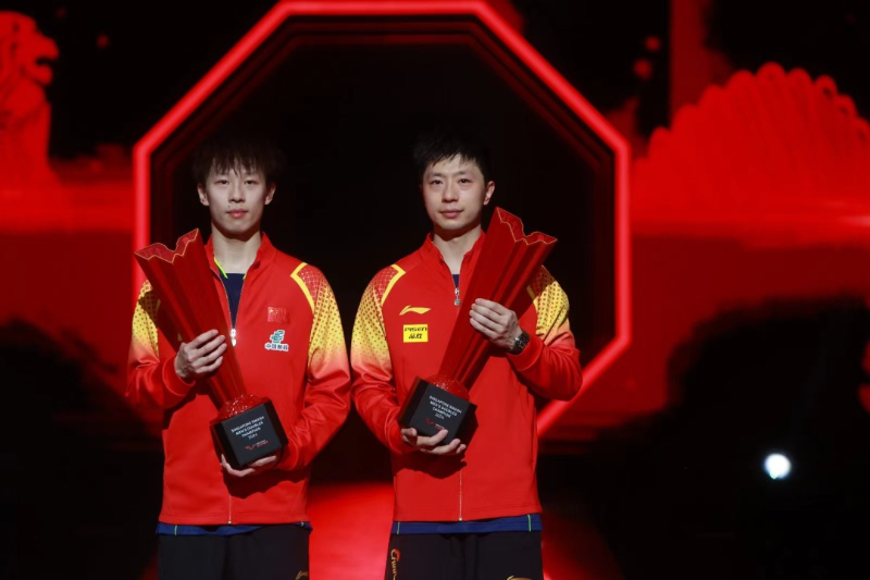 半决赛之后,两对国乒组合会师决赛,提前锁定男双冠军。在当天的决赛中,马龙/林高远与樊振东/王楚钦联手上演了一场巅峰对决,双方在前四局打成2比2,马龙/林高远在决胜局以两分险胜。