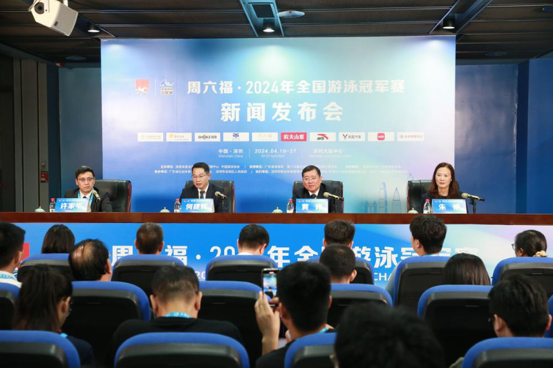 4月17日,2024年全国游泳冠军赛新闻发布会在深圳大运中心召开。发布会介绍了2024年全国游泳冠军赛赛事筹备组织工作相关情况。国家体育总局游泳运动管理中心、深圳市文化广电旅游体育局以及运营单位相关负责同志出席新闻发布会。