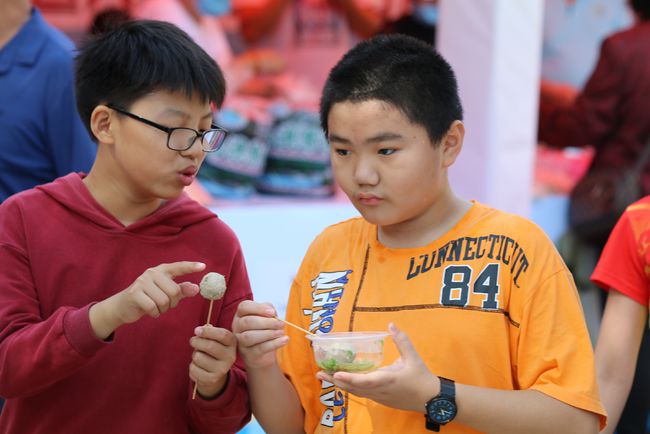 精美的展览有不少人驻足观看,隔壁的农副(海)产品和美食一条街同样火爆。海石花、牛肉丸、花生糖、朥饼等潮汕特色小吃摊位整齐干净,摊主不厌其烦地向过往群众介绍其特色小吃。其中,海石花是用海里的一种藻类——石花菜熬制而成的。石花菜又名海冻菜,是红藻的一种,主要分布在台湾海峡、海南以及西沙群岛等海域,南澳岛的海域也出产石花菜。这种食物富含胶质,外观晶莹,口感爽滑,堪称是来自海洋的天然凉粉。