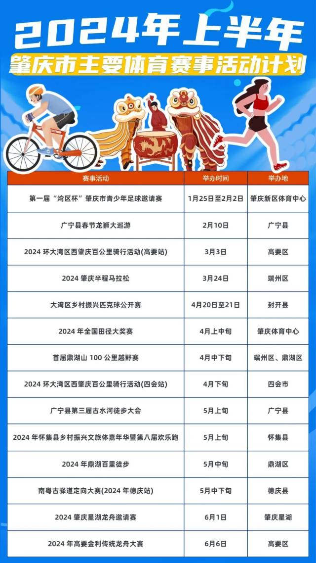 依托独特的资源禀赋,2024年上半年,肇庆将举办丰富多彩的体育赛事活动,着力打造粤港澳大湾区运动之城。