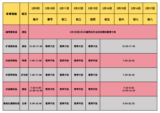 春节期间场馆开放具体时间详见附表。