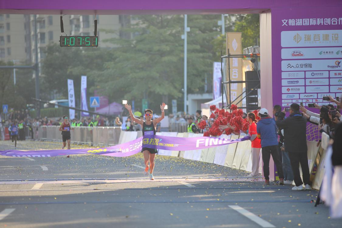 最终,半程马拉松男子组石吉林率先冲线,以1:07:51成绩夺得冠军,女子组由韦春华以1:17:55的成绩夺冠。活动分别为男子、女子半程马拉松前三名颁发奖牌、奖杯、奖金以及前30名特别奖品“金镶玉奖牌”。