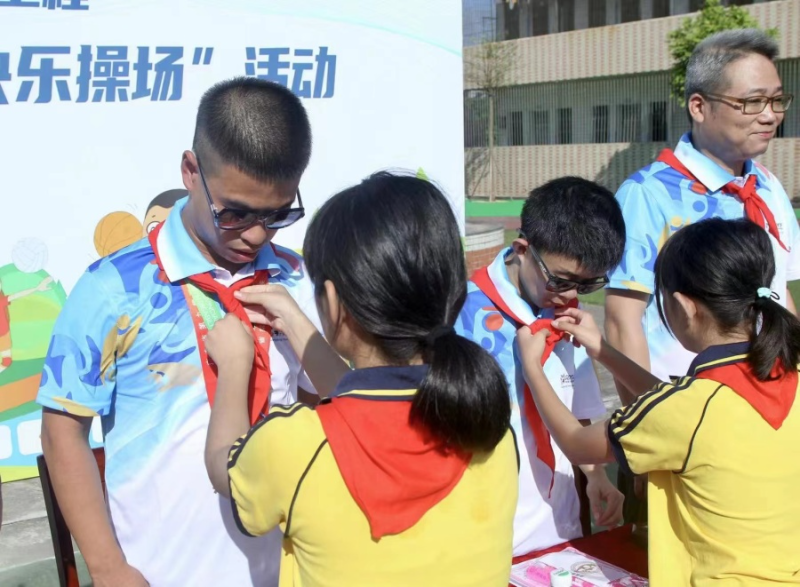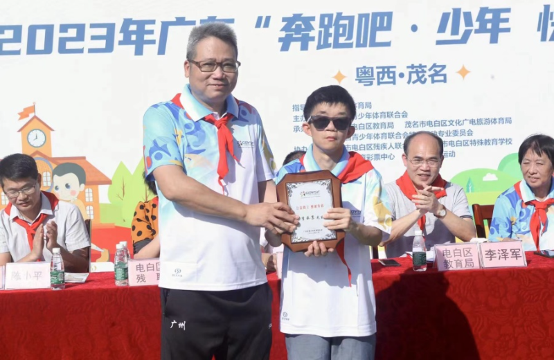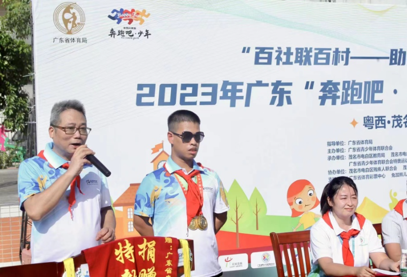 10月24日-25日,“百社联百村——助力百千万工程”2023年广东“奔跑吧·少年 快乐操场”活动为茂名市电白区特殊教育学校的少年儿童带来别样温暖。广东省青少年体育联合会会长高敬萍等领导和嘉宾出席,在广东省第九届残疾人运动会中获得男子400米、800米跑及男子铅球冠军的吴宗泰也来到现场,分享其励志的体育人生,通过榜样的力量为孩子们送上一份特别的鼓舞。