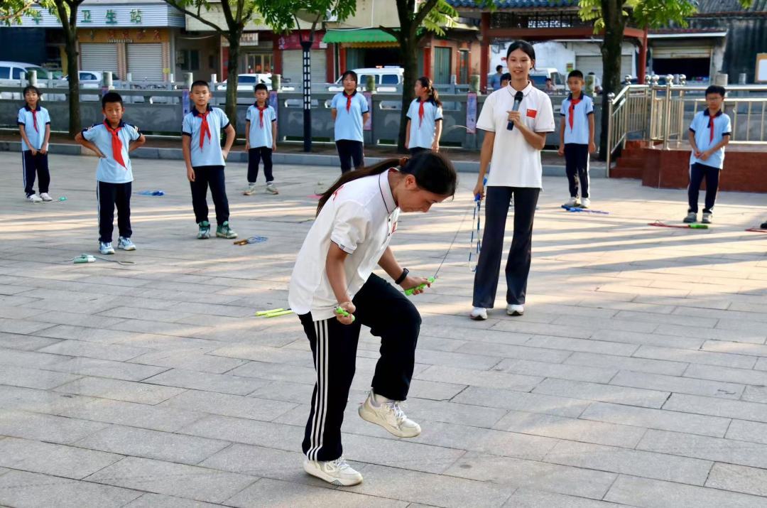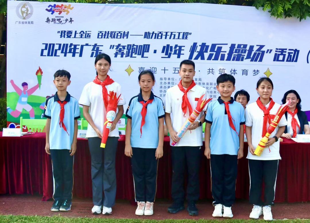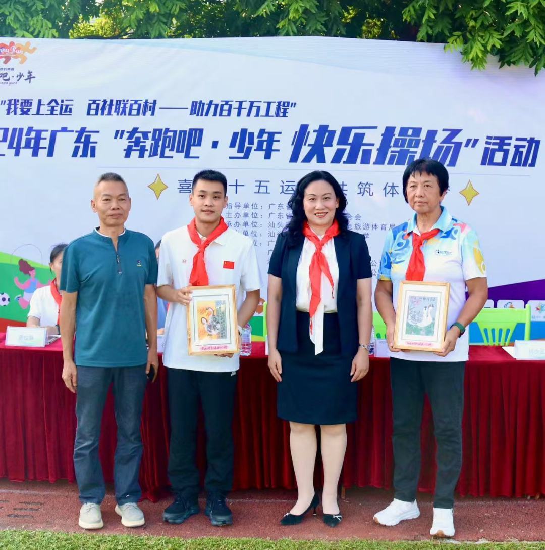 值得一提的是,在汕头站活动前,“我要上全运 百社联百村——助力‘百千万工程’”2024年广东“奔跑吧·少年 快乐操场”连州站和阳山站的活动分别于16日和17日在连州市九陂镇联一小学、清远阳山县阳山中学举行,均设置了冠军课堂和体质健康检测,并向学校捐赠了智能跳绳。