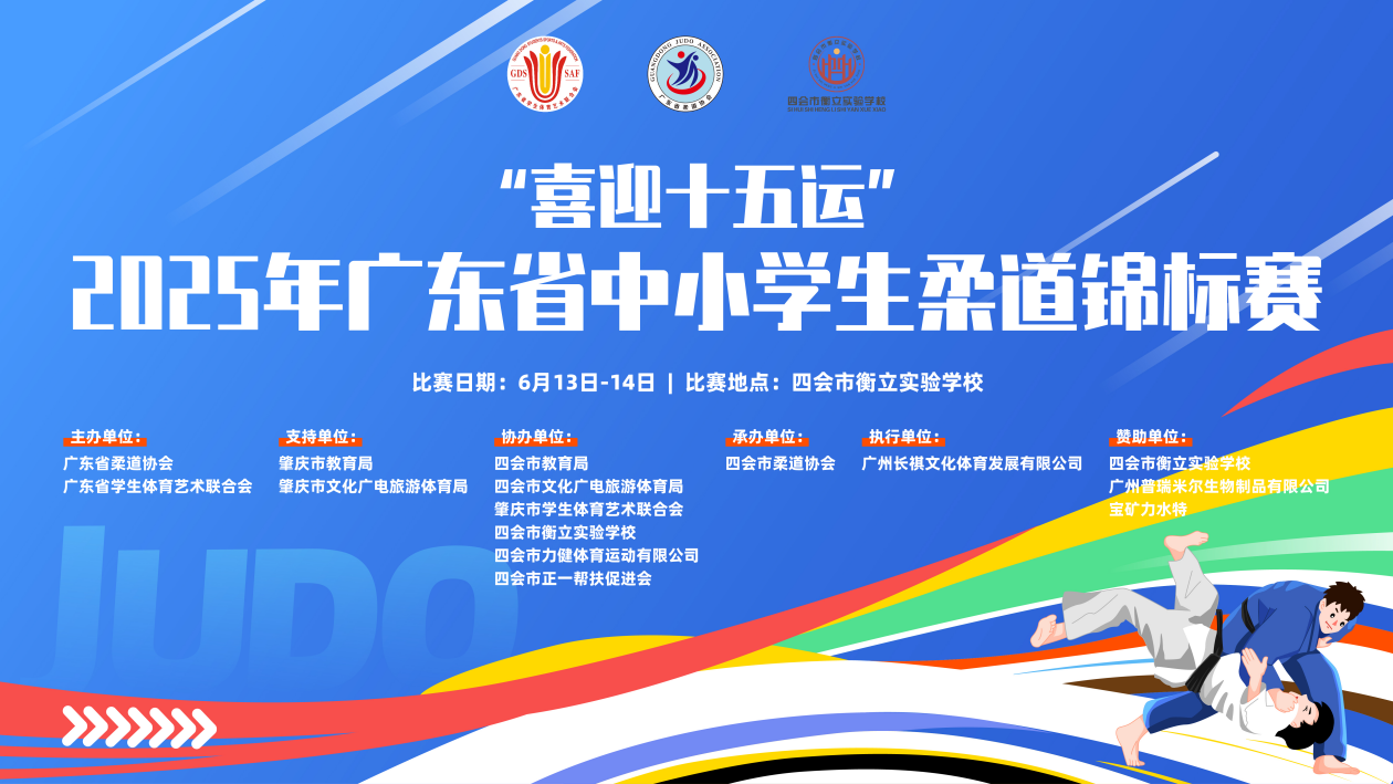 “喜迎十五运”2025年广东省中小学生柔道锦标赛将于6月14日在广东省肇庆市四会市衡立实验学校举办。这场承载着十五运期盼的青少年体育盛会,是柔道运动的竞技舞台。让我们共同期待小选手们以柔道垫为纸,以道服为墨,书写属于广东中小学生的柔道篇章!
