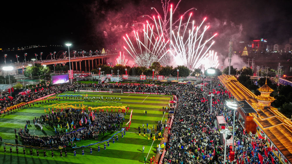 2024全国“村晚”示范展示活动暨贵州“村超村晚”举行音乐烟花秀表演