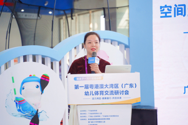 研讨会上,来自粤港澳三地的幼儿园代表还从空间规划、环境创设、课程构建等方面,分享了各自的体育特色建设经验。广东省育才幼儿院一院副院长刘思玲带来了构建“立体空间+三维课程”幼儿体能发展新生态的思考;香港顺德联谊总会梁洁华幼稚园校长吴少明分享了香港“幼儿体能与健康”范畴的发展现况。澳门濠江中学附属幼稚园教研组长郭凯则以“‘挤’中生智——澳门幼儿体育的实践与探索”为题分享了该园创新“小篮球”课程并形成文化的心路历程。深圳壹基金公益基金会高级项目经理罗元佳讲述了美团乡村儿童操场公益计划如何用“数字+公益”的方式,发展乡村幼儿体育,为乡村儿童带来改变。