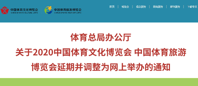 2020中国体育文化博览会 中国体育旅游博览会(以下简称两个博览会)将于12月21-23日首次在网上举办。两个博览会以“健康中国 体育力量”为主题,设置涵盖文化、旅游在内的多个展区、系列论坛及配套活动,以“云展示”“云论坛”“云活动”“云对接”等形式,全方位打造多维度网上展示平台、论坛线上平台和商务对接服务平台。