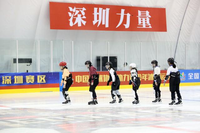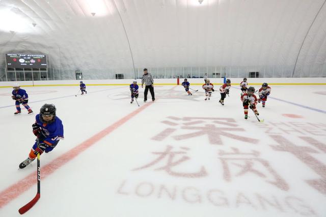 在深圳昆仑鸿星冰球气膜馆,很多孩子走上冰场,开启了人生第一堂冰球课。(受访单位供图)