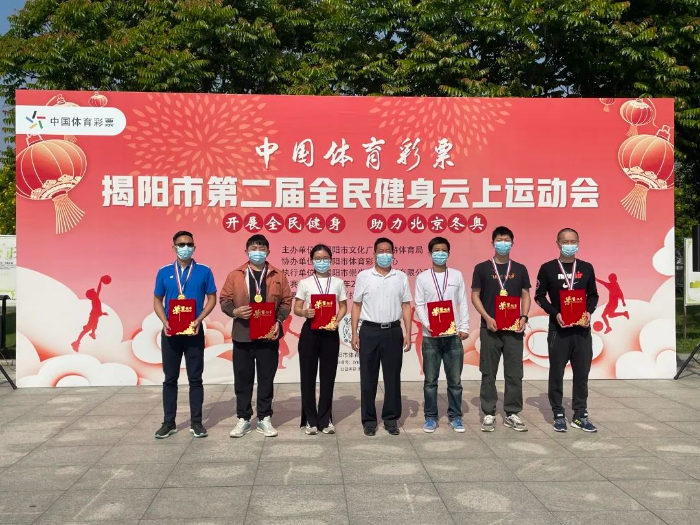 中国体育彩票揭阳市第二届全民健身云上运动会颁奖仪式近日在揭阳楼广场举行。作为“体育事业的生命线”,揭阳体彩将继续全力支持全民健身工程,使市民的健身空间不断扩展、健身项目愈加丰富、休闲娱乐有更多选择,真正享受到体育带来的健康和快乐。