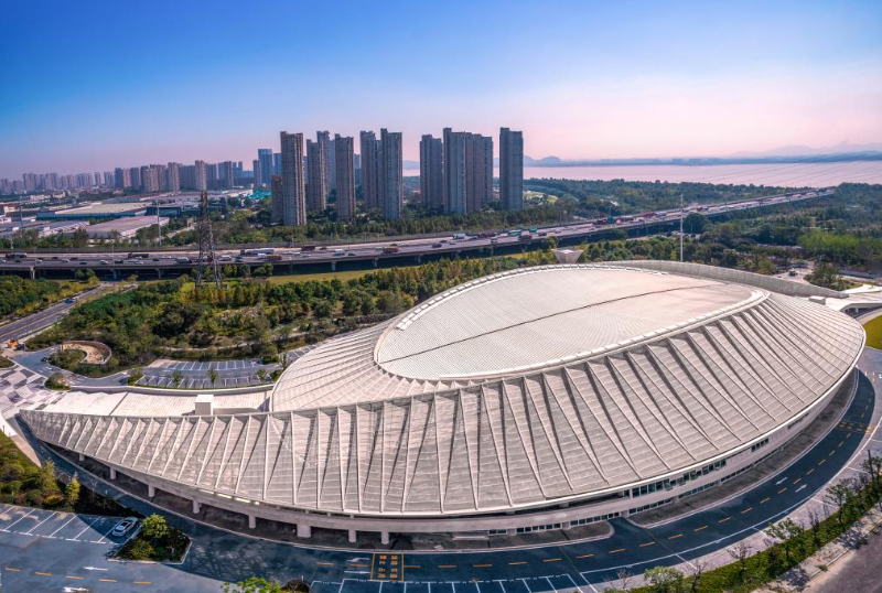 2021年9月23日拍摄的钱塘轮滑中心,这里是杭州亚运会轮滑和滑板项目的比赛场地。新华社发(杭州亚组委供图)