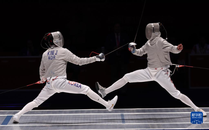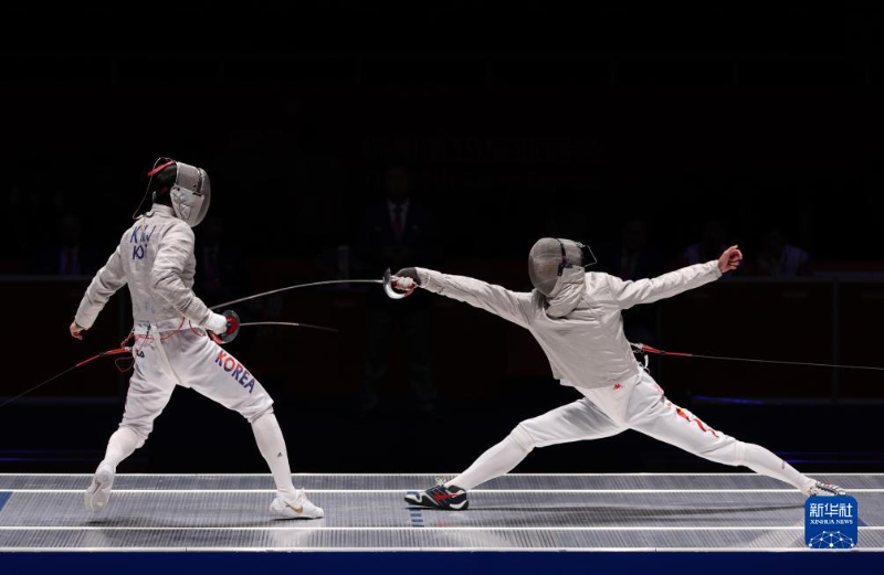 梁建豪(右)与韩国选手金准镐在比赛中(图/新华社)