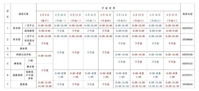 春节期间场馆开放具体时间详见附表。