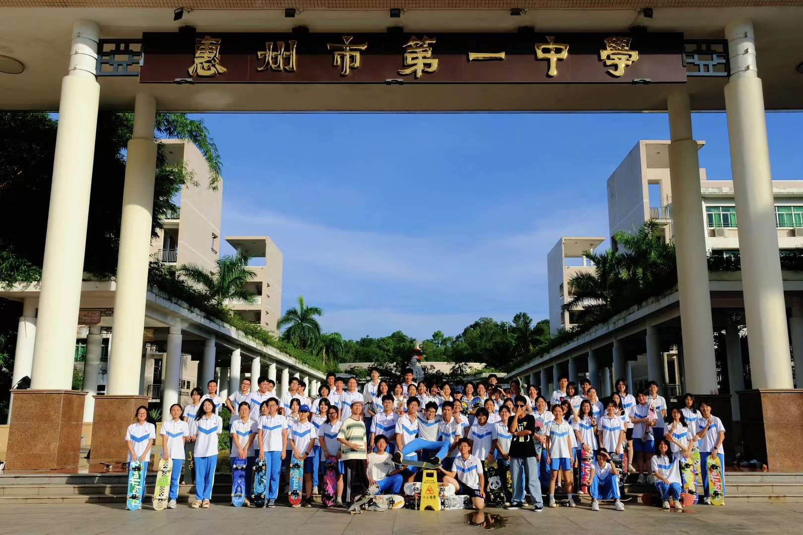 今年3月,惠州市第一中学(高中部)在全市教育系统开设了首个滑板体育课课程,聘请KEEPUP滑板俱乐部的专业滑板教练进校园开展体育课堂教学。上半年,该校高一、高二年级近200名学生自主选择滑板作为体育课,每周上两节滑板课。