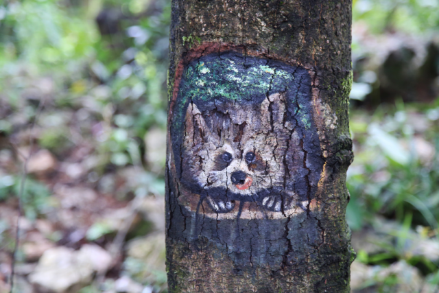 本次活动选定的路线为101黄麻南环线,全长约6公里,徒步耗时约2-3小时,海拔高度差为150米。该路线沿途步道设施完备,林荫与竹林遍布,适宜进行休闲性徒步活动。步道路面主要由木制台阶和枕木砾石构成,四周绿树成荫、竹林葱郁、溪水细流,参与徒步活动可为炎炎夏日带来一份清凉,美丽的自然风光令人感到心旷神怡。此外,沿途树木上绘有生动的动物图案,如黄喉貂、长颈鹿、大熊猫、小浣熊、小松鼠等,它们仿佛隐藏在树丛之中,等待着细心的旅人去发现它们的踪迹。