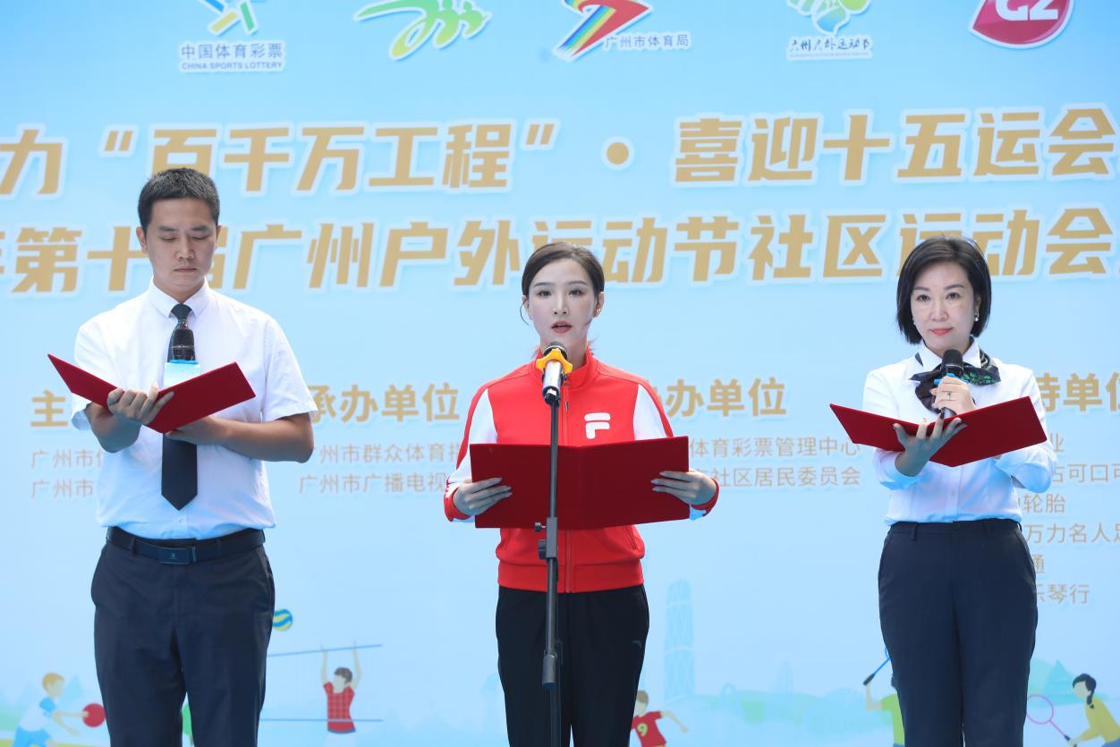 由广州市体育局、广州市体育总会主办,广州市群众体育指导中心、广州广播电视台承办,以“爱户外,享自然”为主题的2024年第十届广州户外运动节社区运动会第3站活动日前在黄埔区中海誉东社区举办,吸引了社区居民和周边群众600余人参与。两届蹦床世界冠军获得者——蔡琪子与社区业主代表一起宣读全民健身倡议书。