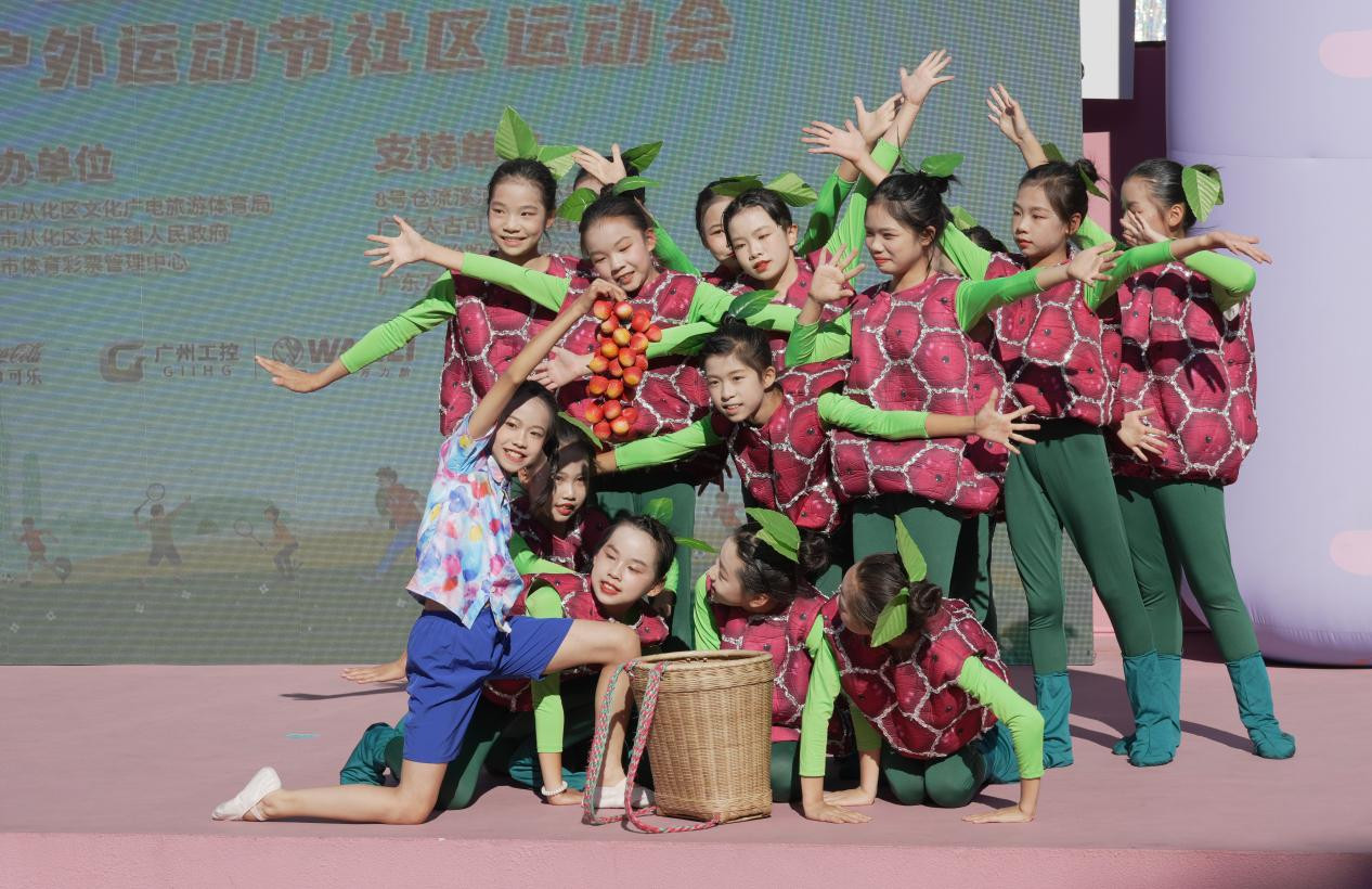 在舞台上,来自太平镇信诚木棉小学的同学们献上了合唱节目《荔枝红了》。两届蹦床世界冠军蔡琪子与群众代表一起宣读全民健身倡议书,号召大家走出户外,迎接阳光,乐享运动和美好生活,以饱满的精神状态迎接明年全国第十五届运动会和残特奥会的到来。广州市群众体育指导中心副主任林伟强、太平镇人民政府副镇长马燕梅、世界冠军蔡琪子等领导嘉宾鸣响汽笛,宣布本站社区运动会正式启动。