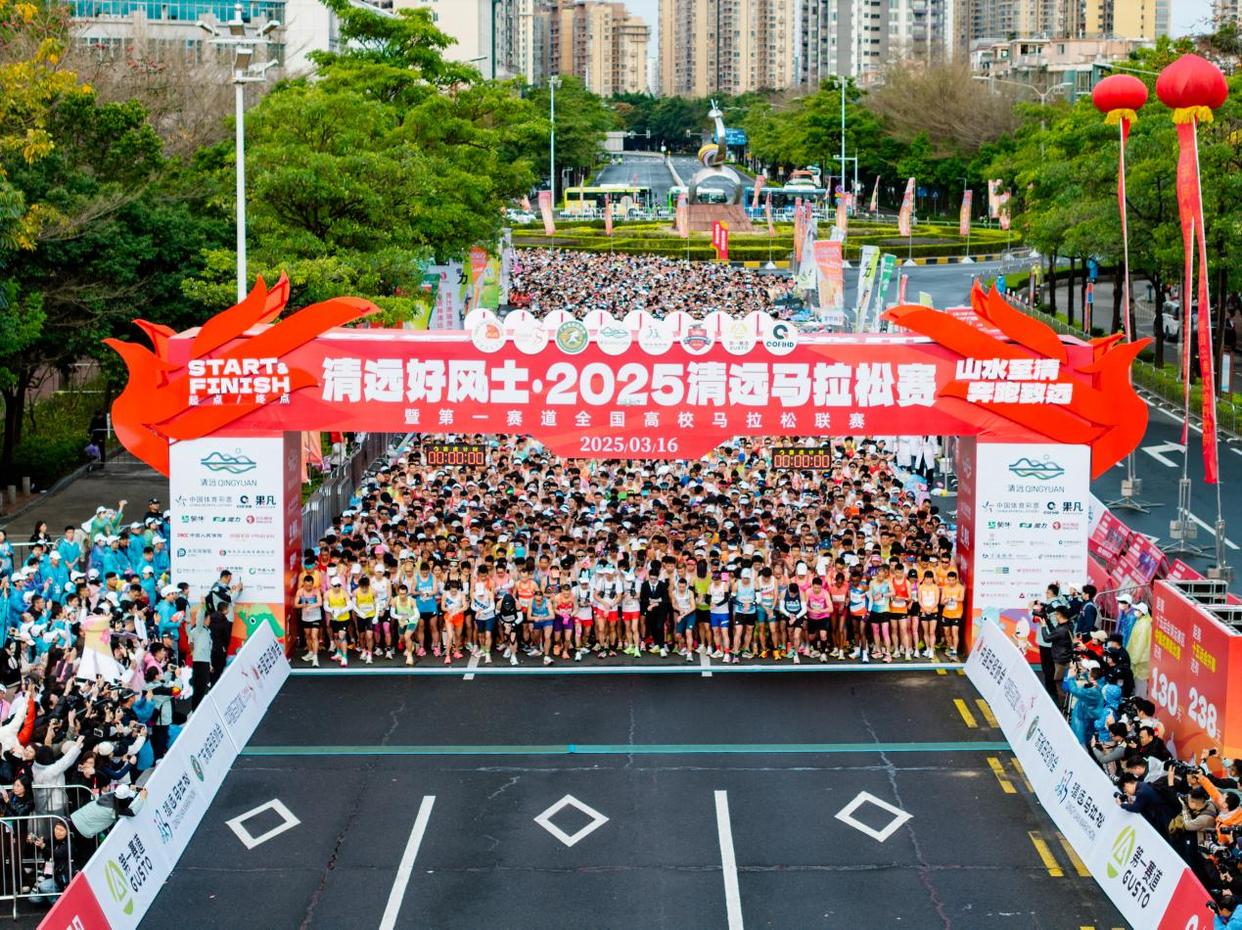 3月16日7时30分,清远好风土·2025清远马拉松赛正式鸣枪起跑。