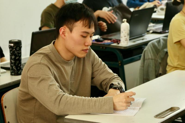 在暨大,谢思埸有非常多的“迷弟迷妹”,甚至有学生是因为看到谢思埸等学长在赛场上的精彩表现而选择报考暨南大学。经济学院国际贸易学2021级硕士生陈扬就是谢思埸的“迷弟”,听闻采访当天谢思埸要来暨大上课,他早早就做好了准备,并成功地和谢思埸合了影、要到了签名。