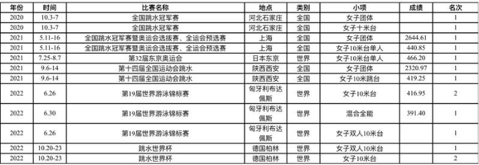 而在2021年举行的东京奥运会上,小将全红婵一鸣惊人。她作为中国奥运代表团最年轻的运动员,以五个动作三跳满分的466.2的总分创女子10米跳台历史最高分纪录夺得10米跳台冠军,她以精湛的技术外加上一颗“大心脏”,成功为中国跳水续写辉煌,更向世界展示了中国“00后”的风采。466.20分的分数也是自2006年国际泳联执行新的跳水计分规则以来,在奥运会、世锦赛、世界杯上的历史最好成绩。