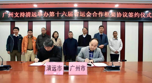 1月7日,广州市体育局党组书记、局长欧阳资文一行赴清远调研体育对口帮扶工作并签署支持清远举办第十六届省运会合作框架协议和“群体通”合作备忘录。双方就体育“示范基地”联培、运动员交流选材、体育科研、办大赛经验交流等方面进行全方位合作。清远市领导严志明、陈孝安及清远市文化广电旅游体育局等相关部门负责人出席了签约仪式。