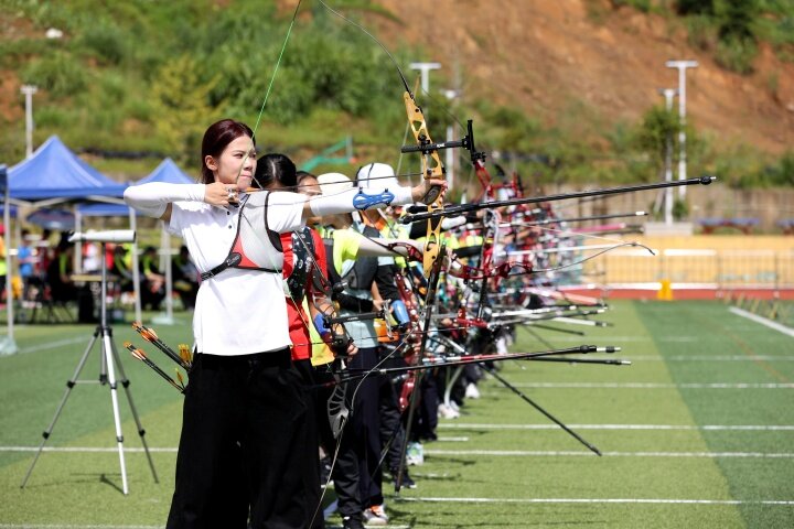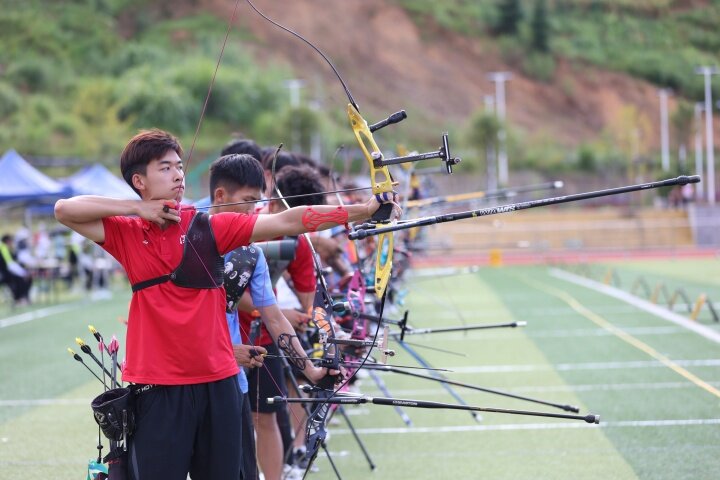 8月9日上午,广东省第十六届运动会"中国体育彩票" 竞技体育组射箭比赛在连南体育场拉开帷幕。此次比赛有来自全省各地级市的8支队伍117名运动员参赛,在为期4天的赛程中,展开“箭”拔弩张的较量,角逐出13枚金牌。