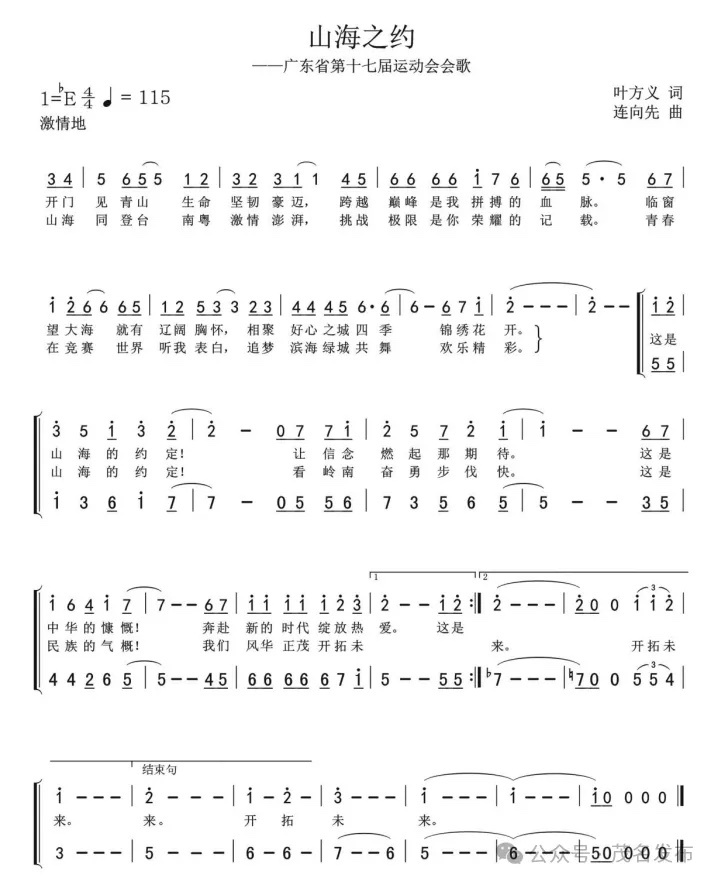 广东省第十七届运动会会歌《山海之约》,时长共3分18秒