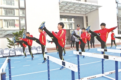 4日下午,广东省青少年竞技体育学校正门新簇簇的蓝色跑道上,一群穿着红黑运动衣的孩子正在认真而热烈地接受田径跨栏的专项训练,他们的运动衣上统一印着“林芝体校”的字眼,而指导他们训练的则是省体校的专业教练。
