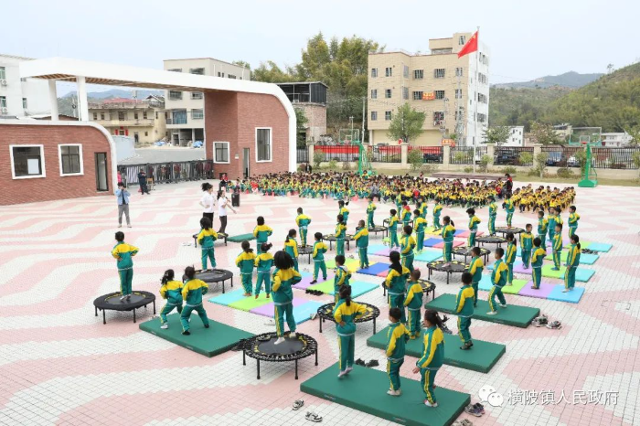 为了推广蹦床项目进校园,驻横陂镇帮扶工作队自2021年进驻以来,通过对乡村校园体育情况的实地调研,制定了大众蹦床帮扶计划。2022年在横陂镇域7所小学顺利配置一批中、小蹦床以及体操垫等配套器材,并通过体育支教等方式邀请蹦床专家指导教学,在校园内开展大众蹦床运动知识推广和专项体育课,激发学生锻炼兴趣和促进学生健康成长。