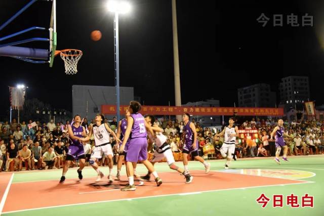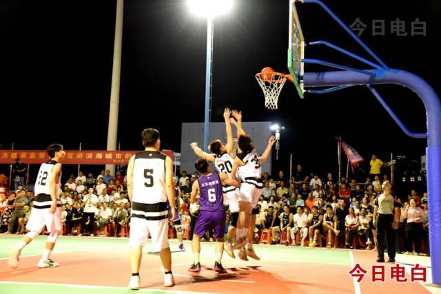 当晚比赛由电白区沉香墟对阵水东湾疍家墟、信宜市窦州墟对阵茂南区油城墟。现场人潮涌动,赛场上球员你攻我守,传球、突破、上篮、抢断、投篮……一系列精彩的动作点燃了观众心中的激情,掌声、欢呼声此起彼伏。